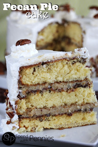 Place one of the cakes on a plate with the pecans facing up. Top with half of the cooled filling. Repeat layers and finally top with the last cake.