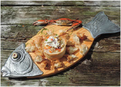 bread. Bake at 350° about 20 minutes, until bread is toasted and crab bubbly. Stir in sherry, onion,lemon juice, parsley and pepper.