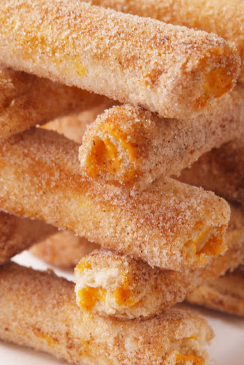Roll cooked pumpkin cheesecake fries in cinnamon sugar until coated. Serve warm with caramel sauce for dipping.