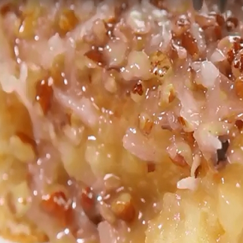 Heat the butter, sugar, and evaporated milk in a small saucepan until boiling. Cook and stir for about 5 minutes, or until slightly thickened. Remove from heat and add in the coconut and pecans.