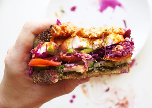 Pesto Mozzarella Sauerkraut Veggie Sandwich