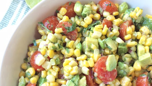 Combine thawed corn, chopped avocados, tomatoes, red onion, and cilantro into a mixing bowl.