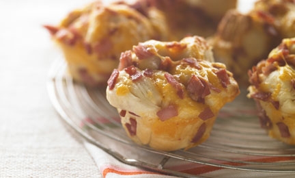 Instead of baking in muffin cups, spoon ham mixture into 8 mounds on baking sheet sprayed with cooking spray, then bake as directed.