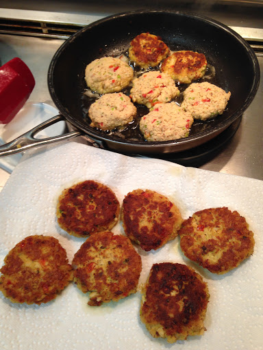 Spray medium sized skillet with non-stick cooking spray and cook tuna patties over medium heat, turning occasionally to make sure both sides cook evenly.