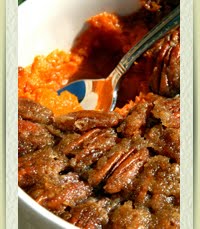 Place the sweet potatoes in a serving dish and top with the spiced pecans (recipe below).