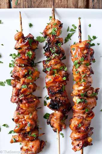 Brush the chicken with the glaze, place on the grill. Brush with glaze and turn every 2-4 minutes until cooked through, about 10 minutes.