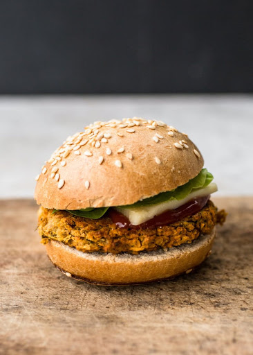 Shape the mixture into 8 balls (around 1/3 cup of mixture for each one) and flatten onto the baking sheet so each patty is 3/4- to 1-inch thick. Bake for 15 minutes, then flip each patty over using a metal spatula. Bake for another 10 to 15 minutes. Serve immediately in hamburger buns, or allow to cool, then freeze on the baking tray; once frozen solid, transfer them to a freezer bag and freeze until needed.