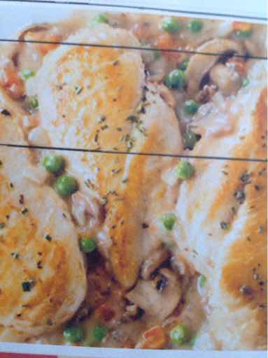 Reduce heat and simmer for 20 minutes or until chicken is cooked through. Remove from heat and stir in peas, let stand for 1 min.