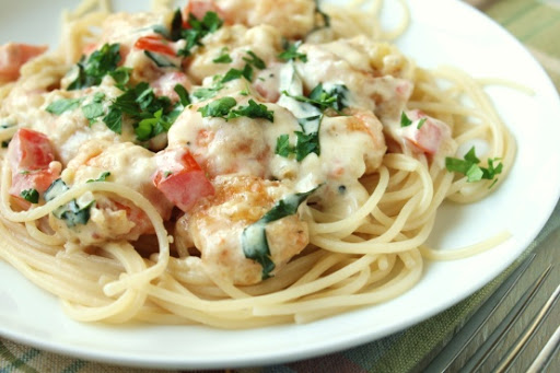 Divide angel hair pasta among plates. Top with shrimp and cream sauce. Garnish with additional Parmesan and basil if you’d like.