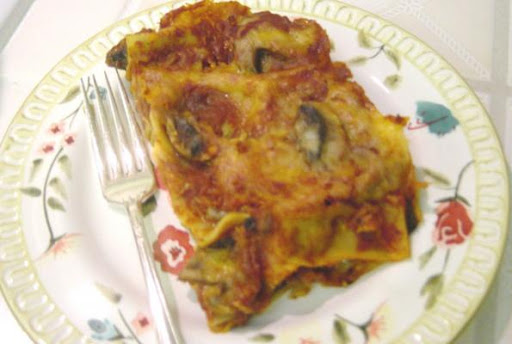 4. Layer lasagna noodles in pan, then sauce, and then eggplant until all are gone. Layer with 1 layer vegan cheese (if using) on top.