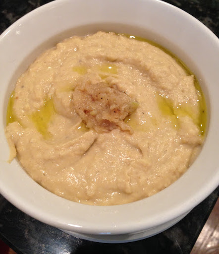 2. Squeeze roasted garlic out of shell and mix with chick peas in a food processor.