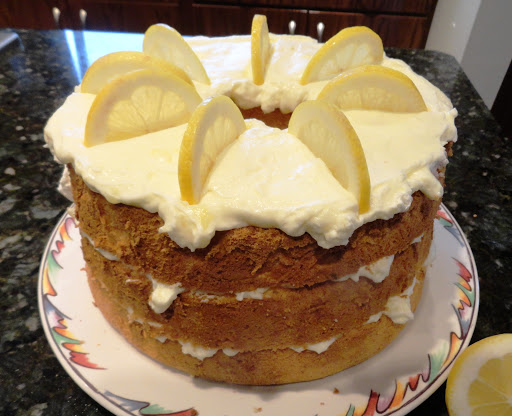 Once the cake has cooled completely, slice it horizontally into 3 layers. Fill each layer with 1/3 of the filling. Spread remaining filling on top of cake. Decorate top with lemon slices. Enjoy! For more detailed instruction and more pictures, visit my blog Apron Strings and Tasty Things at foodandfact.com