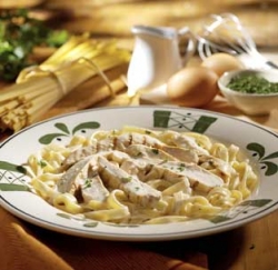 Finally, add chicken and pasta to the sauce and stir until all ingredients are well incorporated and very hot.