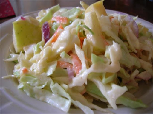 Very Good, I liked the idea of the apples in the slaw. The onion was a bit overpowering to the apples though. I think next time I'll leave the onion out. Note ~ I used 1/2 of a large head of cabbage and needed to double the dressing to get it to the right quantity for the amount of slaw.