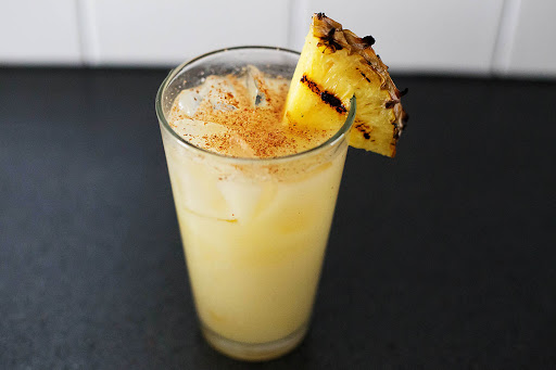 Place a few small cubes of grilled pineapple in the bottom of a tall glass