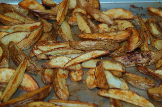 On 2 baking sheets, lay fries out in a single layer (not touching). Sprinkle the remaining 1/2 tablespoon (more or less to taste) over fries.