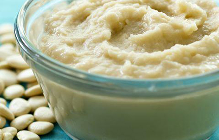 Rinse and drain the beans and put in the bowl of your food processor. Pulsing in on/off turns, puree the drained beans with just 1 tablespoon of water in processor until smooth, stopping occasionally to scrape down sides of bowl. The goal is a smooth, but not wet, puree. (You are aiming for the consistency of peanut butter.) If necessary, thin with a little more water by one teaspoonful at a time until there are no flecks of whole beans visible.