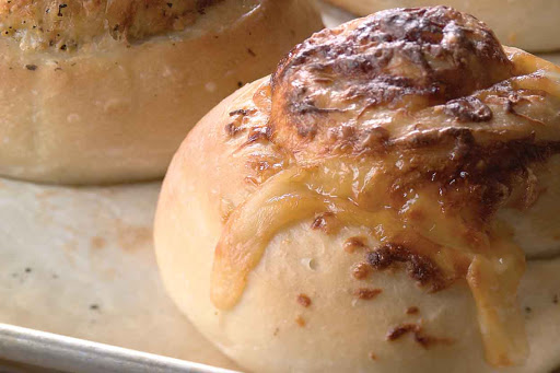 A lava-flow of aromatic cheese melts down the sides of these chewy/crusty loaves. Step-by-step photos illustrating how to make this bread are available at Flourish, our King Arthur blog.