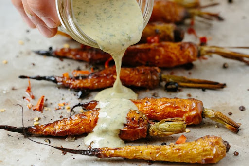 Add everything to a food processor and blitz until just smooth. You can also mix this up with an immersion blender. Use immediately or store in the refrigerator for up to one day. Blend again before using.