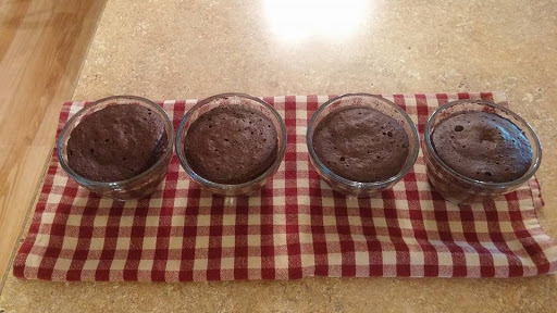 Mix ingredents thoroughly together, pour into greased bowls, and cook in the microwave. (The recipe says to microwave for 50 secs but I needed to microwave for 2 minutes, one minute at a time, incase they overflow.)