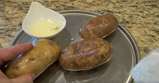 2. Rinse potatoes under cool, running water and pat dry with paper towels. Note: don’t prick potatoes with a fork.