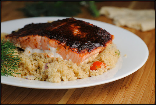 Maple Glazed Salmon with Tomato-Dill Couscous