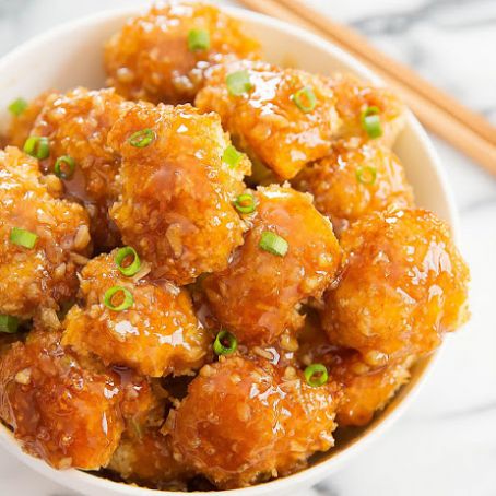3. While the cauliflower is cooking, make sauce on the stove. Add all sauce ingredients except the cornstarch + water. Bring to a simmer and stir until completely mixed. In a small bowl, completely dissolve cornstarch in water, then add to the mixture. Stir until sauce reaches a low boil again and cook until sauce thickens (about 2 minutes). Toss cauliflower in sauce and coat. Serve warm. Garnish with fresh chopped scallions if desired.