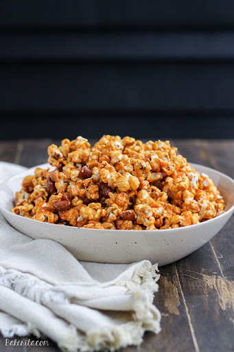 Combine the popcorn and almonds in a large bowl and set aside while you prepare the caramel. I recommend using the largest bowl you have to make stirring the caramel in cleaner and easier!
