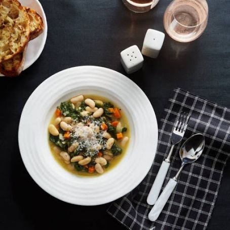 To serve, divide escarole and beans evenly among 4 serving bowls. Garnish with freshly grated cheese, drizzle with olive oil and serve with warm, olive-oil-rubbed toast.