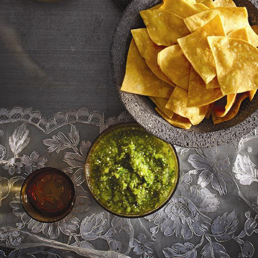Whirl cilantro, jalapeno, garlic and salt in a food processor until finely chopped. Add tomatillos. Whirl until just chopped but not puréed. Serve with tortilla chips.