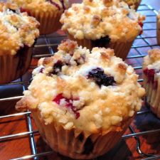 In a large bowl, combine the flour, cracker crumbs, sugar, baking powder, baking soda and salt. Combine the eggs, buttermilk and butter; add to dry ingredients just until moistened. Fold in blueberries.