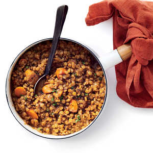 Start tasting for doneness at the 28-minute mark. They'll continue to soften as they sit, so be sure to stop the cooking process before they turn to mush. Red and yellow lentils do not work well here, as they tend to cook much faster and will fall apart. You want to maintain a bit of a bite, making these lentils better candidates for salads, soups, and stews.