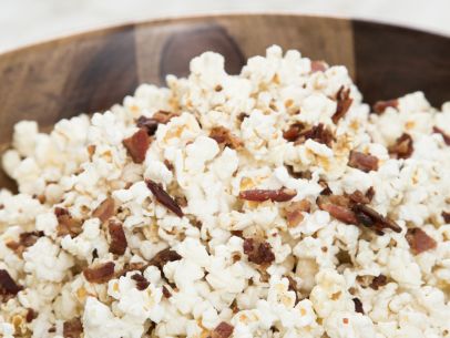 In the skillet used for the bacon, melt the butter and maple syrup over medium-low heat, stirring to loosen any browned bits on the bottom of the skillet. Stir in the crumbled bacon and then pour the mixture over the popcorn; toss well to coat all of the kernels. Season with salt and toss again. Serve immediately.