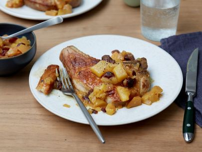 2. Add chutney to pan and, scrape up any brown bits from bottom using a wooden spoon. Simmer until slightly thickened. Return Chops to pan and cook about 2 more minutes, or until chops are done cooking.