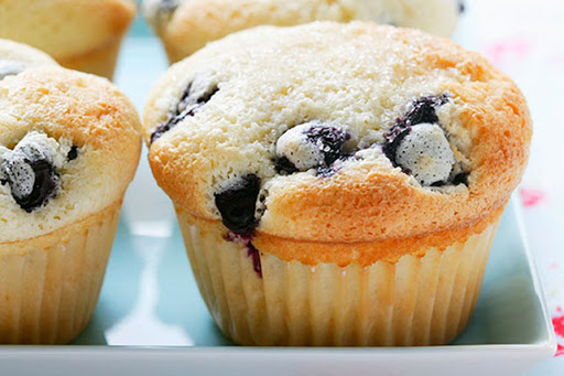 Beat cream cheese, milk and butter until blended. Add eggs and lemon juice; mix well. Add to flour mixture; stir just until moistened. (Batter will be lumpy.) Stir in blueberries.
