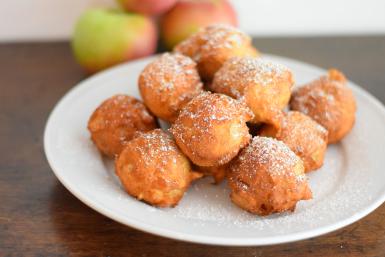 Use the slotted spoon to remove the fritters from the hot oil and place on a paper towel lined plate. As soon as they are slightly cooled, quickly roll them in the cinnamon sugar. Repeat with the rest of the batter. Sprinkle the warm fritters with powdered sugar. Make sure to enjoy them warm!