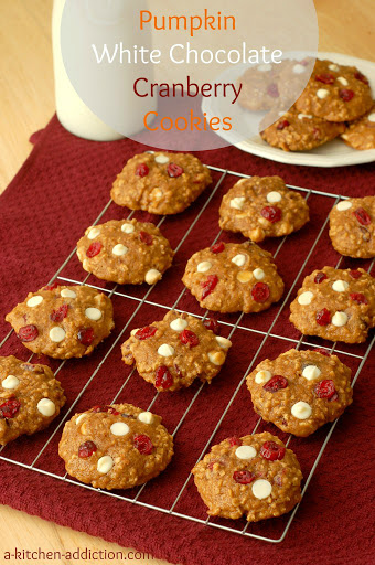 Slowly add dry ingredients to wet ingredients and beat until combined. Stir in white chocolate chips and cranberries.