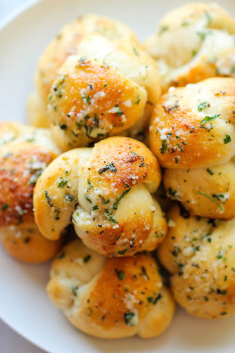 Place knots onto the prepared baking sheet and brush each knot with half of the butter mixture. Place into oven and bake until golden brown, about 8-10 minutes.
