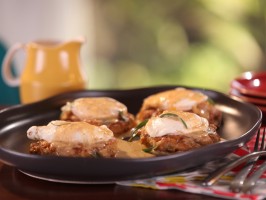 Crab Cake Benedict with Old Bay Hollandaise on Johnnycakes
