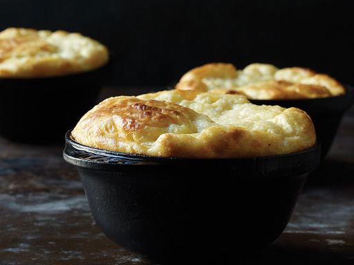 Set a rack in the center of the oven and preheat to 400°. Grease four 6-ounce soufflé molds or ramekins with butter and set them aside.