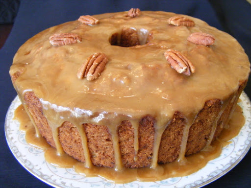 Fold in apples and pecans. Pour into greased and floured tube cake pan.