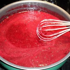 To make sure that the jelly is of the right consistency, place a small saucer in the freezer. Remove, once cold, and put a small amount of jelly on the plate. Run your finger or spoon through it and if it doesn’t flow back into the other liquid then your set!