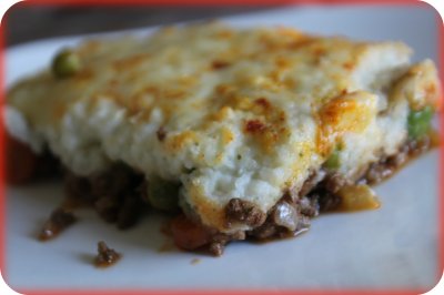 Preheat the oven to 350 degrees. Spread the beef mixture into a 9 x 13 casserole dish. Top with mashed cauliflower. I dolloped it out evenly over the top and then smoothed it down with the back of a spoon to evenly distribute it over the top. Sprinkle with Mozzarella cheese, Parmesan cheese and a dash of Paprika. Bake in the oven for 45 minutes until bubbling and cheese is cooked. Broil cheese for a couple of minutes if it doesn't crisp up - it will depend on the type of cheese you use. Let stand for 5 - 10 minutes before slicing and serving.