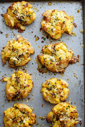 Crispy Garlic Butter Parmesan Smashed Potatoes