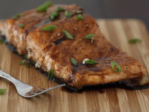 2 In small bowl, stir syrup, vinegar and garlic with whisk. Brush half of the glaze over salmon.