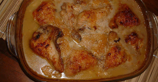 Place chicken pieces in a casserole dish. Mix all of the other ingredients together and pour over chicken. Bake in the oven for about 1 hour or until chicken is cooked through.