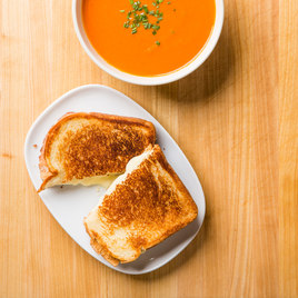 4. Using remaining 4 slices bread, make 2 sandwiches with 2 cheese slices each. Preheat 12-inch skillet over medium-low heat for 3 minutes. Brush 1 side of sandwiches with half of melted butter. Place sandwiches buttered side down in skillet. Brush tops of sandwiches with remaining melted butter. Cover and cook until sandwich bottoms are golden brown, 4 to 8 minutes, moving sandwiches as needed for even browning.