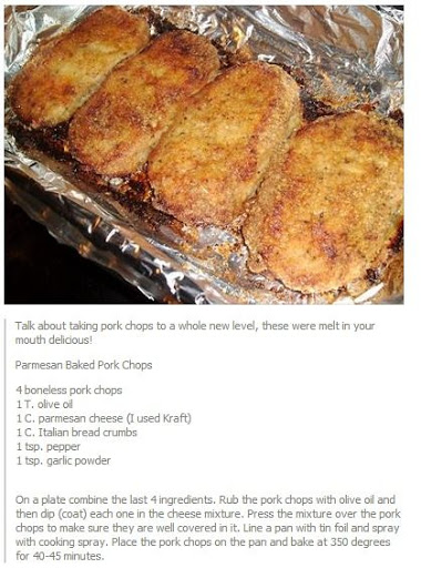 Combine the last 4 ingredients on a plate. Rub the pork chops with olive oil, then dip and coat each chop in the mixture. Press the mixture over the chops to make sure they are well covered. Lin a pan with foil, spray with cooking spray then place the chops on the pan.