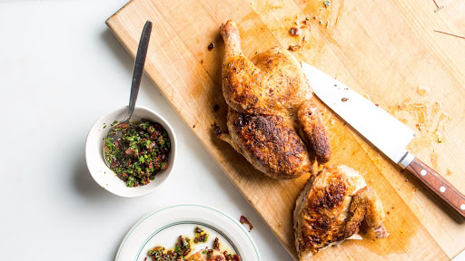 - 1 3 1/2–4-pound chicken, halved, or 4 pounds chicken legs (thigh and drumstick)