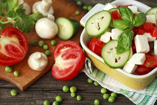 Tomato, Cucumber, Basil Salad